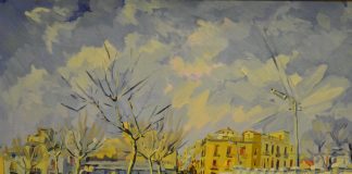 Autor: José Mingol Clausell Título: Plaza Borrull Técnica: Óleo sobre lienzo Dimensiones: 80 x 100 cm.